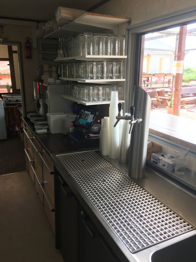 Alles wird in Gläsern ausgeschenkt oder kann im Becher mit an den Strand genommen werden.
